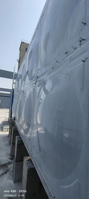 供貨單位:山東省騰翔集團武城模壓制品有限公司施工單位:寧波鋼鐵有限公司產品名稱:不銹鋼聚氨酯保溫水箱產品型號:5米*2.5米*2米現場圖:...