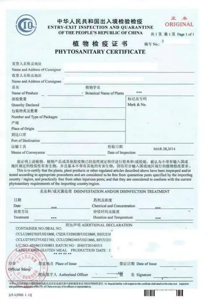 【該批貨物來自注冊加工企業(yè)(注冊號***),符合盧旺達(dá)甜葉菊輸華植物檢疫要求議定書要求”】。經(jīng)熏蒸處理的,還應(yīng)在植物檢疫證書中注明熏蒸處理日期、溫度、濃度和持續(xù)時(shí)間等處理指標(biāo)。