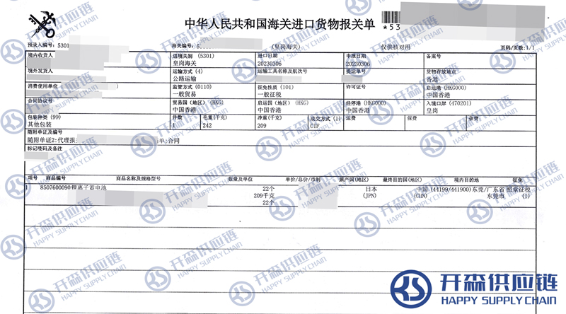 一、鋰離子蓄電池進(jìn)口報(bào)關(guān)代理案例詳情
