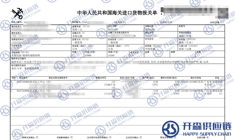 【本文結(jié)語】 上述就是寧波港舊臥式舊加工中心機床進口報關(guān)代理服務(wù)【經(jīng)典案例】的全部內(nèi)容,希望能對您有所幫助,如有舊加工中心進口報關(guān)上任何疑問及問題可隨時在線聯(lián)系我們或撥打 18002611553,開森供應(yīng)鏈擁有豐富的舊加工中心進口報關(guān)操作經(jīng)驗及案例,10余年進口經(jīng)驗為您所用,各類進口疑難都能為您一一解答及協(xié)助快速處理解決!