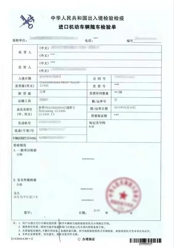 在口岸查驗環節,口岸海關會對進口汽車進行一般的常規項目的檢驗和安全性能檢驗,同時還會根據所掌握的風險信息對進口汽車的某些特定項目進行檢驗;經檢驗合格的進口汽車,由口岸海關簽一車一單簽發“進口機動車輛隨車檢驗單”。