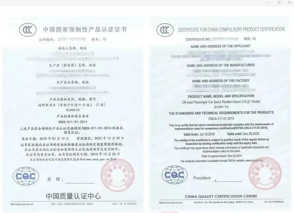 進口汽車入境前,生產商或其代理人應向國家認監委提出申請并取得CCC認證,在口岸入境環節,海關驗證車輛CCC認證證明材料。