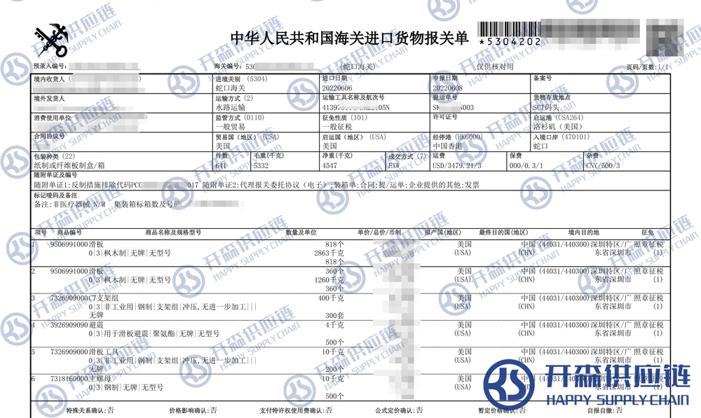 美國滑板進口清關(guān)報關(guān)代理服務(wù)【經(jīng)典案例】