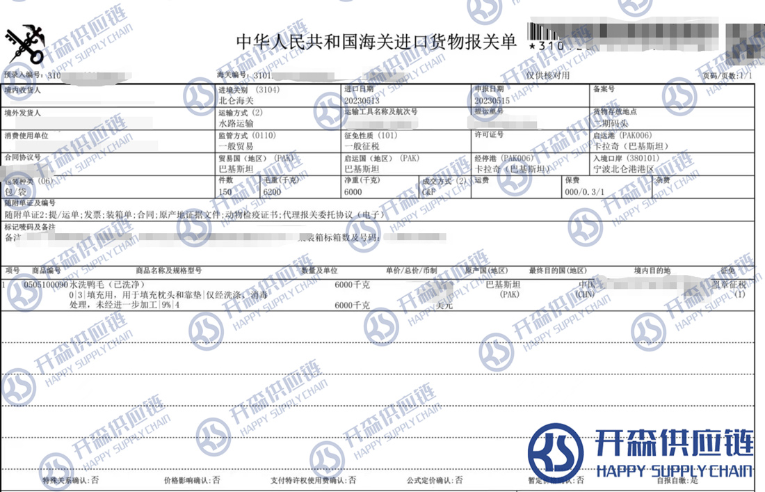 【導讀】您正在閱讀的是關于寧波港巴基斯坦水洗鴨毛進口報關清關代理服務【經典案例】的內容,本文由開森水洗鴨毛進口報關代理小編整理編寫;