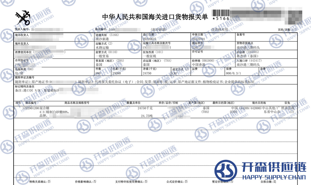 廣州南沙港泰國(guó)混合糖進(jìn)口報(bào)關(guān)代理服務(wù)【經(jīng)典案例】